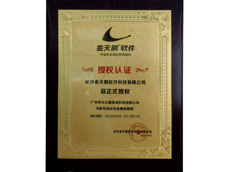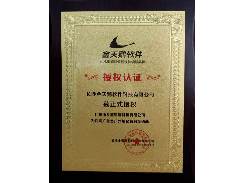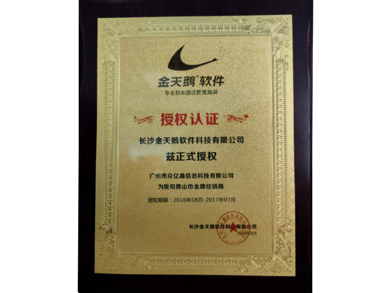 廣州市眾億鑫信息科技有限公司是一家專業(yè)為中高端酒店提供數(shù)字化技術(shù)服務(wù)商,為酒店行業(yè)提供整體數(shù)字化解決方案,是金天鵝軟件官方授權(quán)長期合作伙伴,15年本地化服務(wù)品牌沉淀,1000+酒店實施服務(wù)經(jīng)驗,是(金天鵝軟件)授權(quán)認(rèn)證區(qū)域核心伙伴;